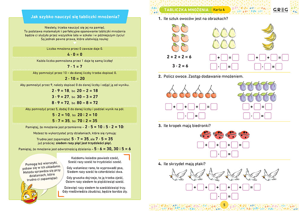 Tabliczka mno¿enia jest jednym z kluczowych elementów nauczania matematyki w pierwszych klasach szko³y podstawowej. Jest te¿ absolutnie niezbêdna w nauce tego przedmiotu przez wszystkie kolejne lata ? oraz w codziennym ¿yciu. Choæby pos³ugiwanie siê pieniêdzmi bez znajomo¶ci tabliczki mno¿enia by³oby w zasadzie niewykonalne. Z tego wzglêdu przyk³ada siê do jej nauki ogromn± wagê. Dzieci poznaj± j± w pierwszej lub drugiej klasie szko³y podstawowej i musz± opanowaæ j± na pamiêæ. Czy mo¿na to jako¶ u³atwiæ dziecku, by nie znienawidzi³o matematyki za konieczno¶æ wkuwania szeregu dzia³añ na pamiêæ?