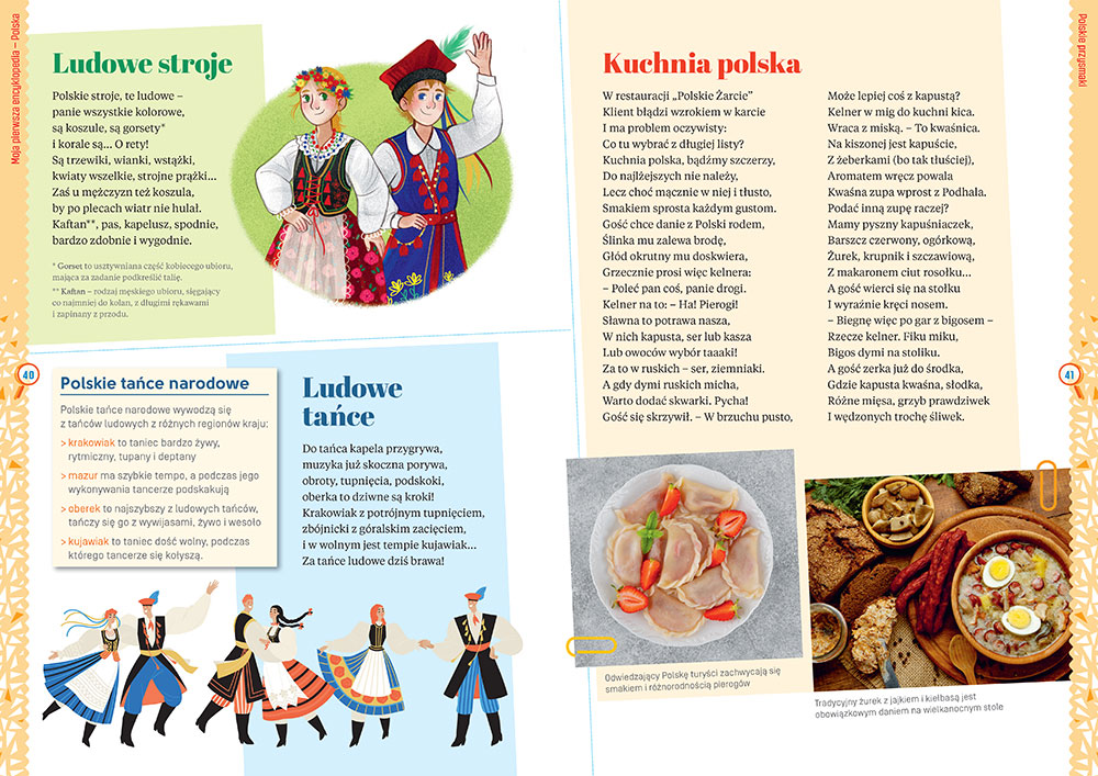 Pojêcia takie jak ojczyzna, naród, patriotyzm mog± wydawaæ siê zbyt trudne dla m³odszych dzieci. Jednak dziêki tej encyklopedii edukacjê patriotyczn± mo¿na zacz±æ ju¿ od przedszkola. Ksi±¿ka jest u³o¿ona w ten sposób, ¿e mo¿na j± przegl±daæ i czytaæ w dowolnej kolejno¶ci stron - m³odsze dzieci na pewno zainteresuj± siê legendami o Lechu, Czechu i Rusie, Warsie i Sawie czy smoku wawelskim, starsze byæ mo¿e bêd± chcia³y poznaæ najpierw ciekawostki o wielkich Polakach. Ka¿demu na pewno przypadn± do gustu smakowite informacje i zdjêcia o s³ynnych polskich przysmakach, takich jak toruñskie pierniki czy krakowski obwarzanek.