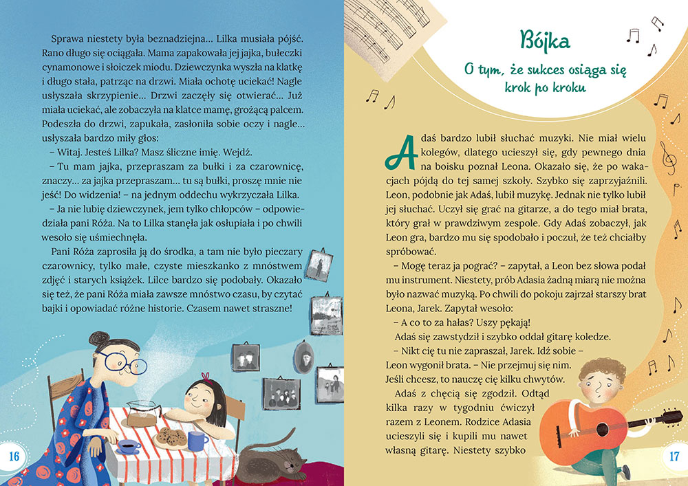 (...) teksty Agnieszki Antosiewicz to nie są zwyczajne krótkie opowiastki, które nie wnoszą niczego nowego w życie dziecka i o których zapomina się zaraz po zakończeniu lektury. WRĘCZ PRZECIWNIE! Każdy z nich opowiada o istotnych wartościach, rozwijaniu pasji, spełnianiu marzeń, byciu dobrym i życzliwym dla innych. W coraz bardziej zepsutym świecie pełnym sfrustrowanych i zagubionych ludzi to taka mała literacka iskierka nadziei, że jednak uda nam się wychować przyszłe pokolenia na uczciwych, bezinteresownych, empatycznych i myślących samodzielnie dorosłych. (...) Myślę, że książka sprawdzi się również świetnie jako prezent dla dzieci przedszkolnych i wczesnoszkolnych w ich placówkach lub bibliotekach - nie tylko jako zbiór interesujących historii, ale również jako pomoc logopedyczna wspierająca rozwój mowy i zachęcająca do podejmowania pierwszych prób czytelniczych.