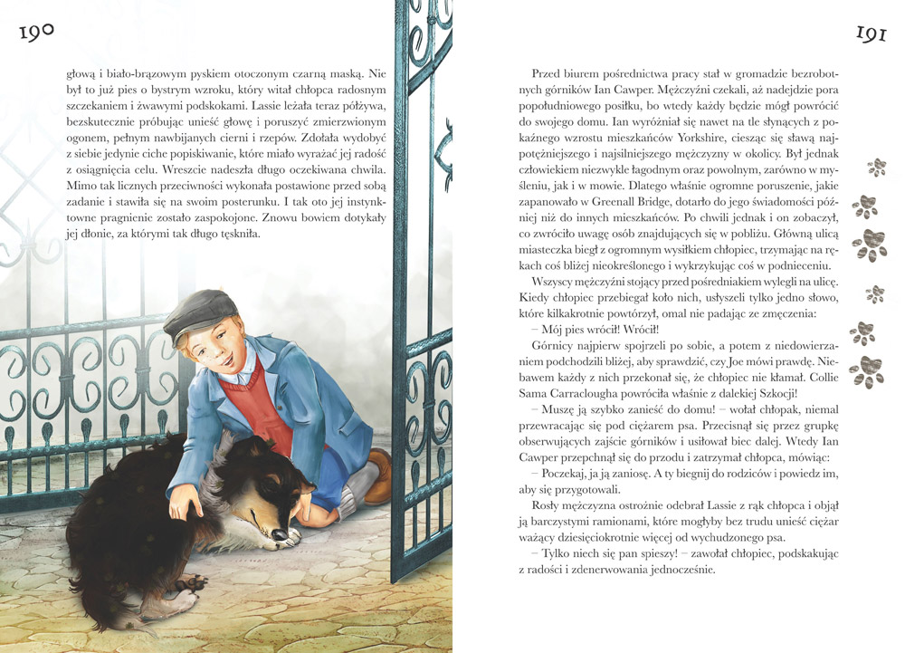 Osobiście lubię takie poruszające, mądre opowieści dla dzieci, a Lassie właśnie taka jest. Książka wywoływała i nadal wywołuje we mnie ogrom przeróżnych emocji. Kiedy byłam dzieckiem, wszystko rozumiałam nieco inaczej, ale zawsze podczas tej lektury w moim sercu na przemian gościł smutek, złość, żal (...) Wydawnictwo Greg stanęło na wysokości zadania i podsunęło czytelnikowi tak pięknie wydaną powieść. Okładka jest fantastyczna, bardzo kolorowa. Tak samo ilustracje wewnątrz, za które odpowiada Arleta Strzeszewska. Myślę, że tak udana, barwna pozycja literacka przypadnie do gustu młodemu odbiorcy.