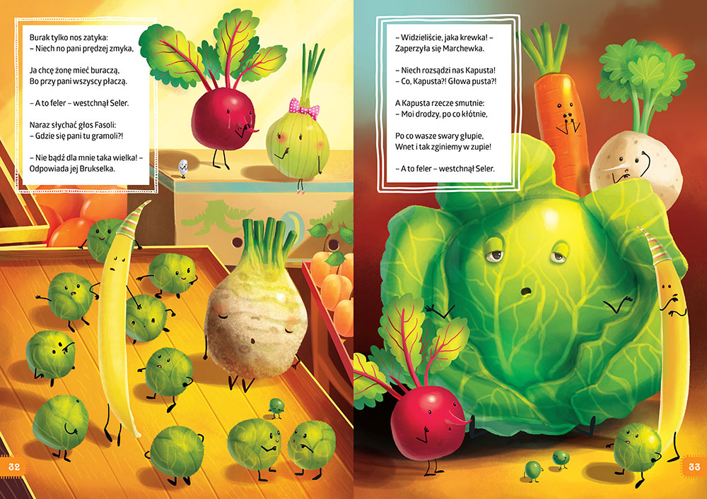 Książka została zilustrowana przez doskonałego grafika Aleksandra Jasińskiego wspaniałymi, pełnymi barw i szczegółów rysunkami, a duży format sprawia, że każda strona to prawdziwa uczta dla oka małego odbiorcy. Zapraszamy do wspólnej z dzieckiem lektury!
