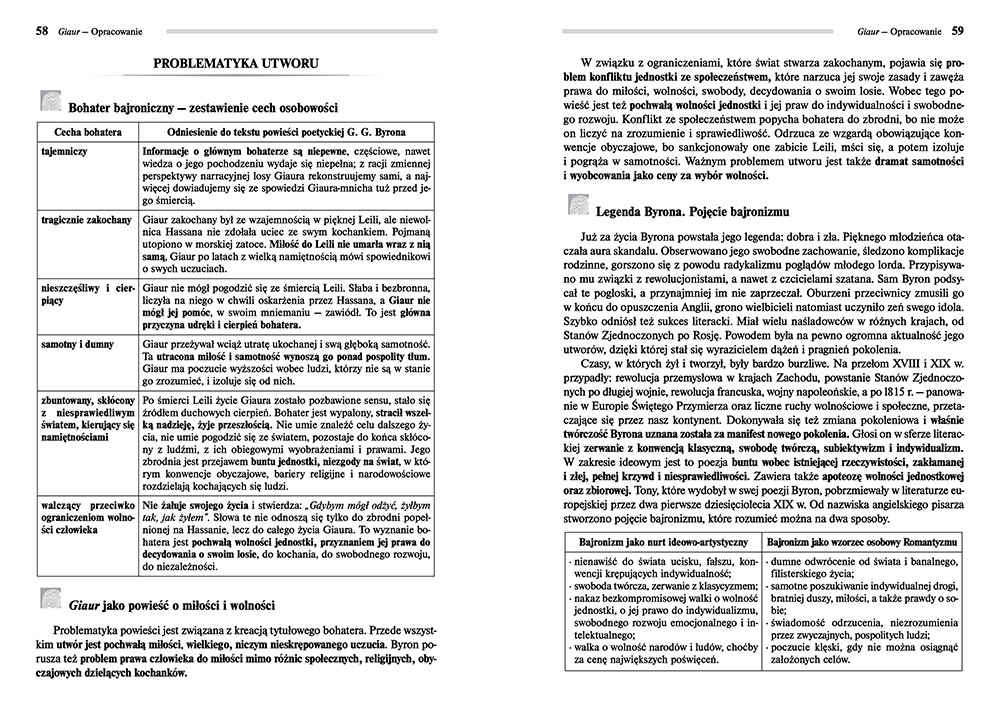 Autor tworzy postać niezwykle tajemniczą, mroczną, naznaczoną piętnem cierpienia, w którego przeszłości kryje się niewybaczalna zbrodnia popełniona z pobudek miłosnych, pełną jednak godności i dumy. Kim jest ów tajemniczy Giaur, dlaczego kryje się przed światem i jakie dramaty odsłoni przed czytelnikiem jego historia?