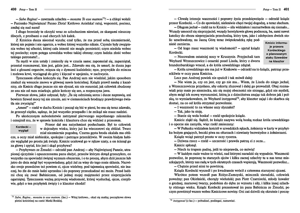 Wydanie Potopu kompletne bez skrótów i cięć w treści. W tym wydaniu znajdziesz odpowiedzi na pytania z podręcznika - „pewniak na teście”, czyli wskazanie zagadnień, które zwykle pojawiają się w pytaniach z danej lektury we wszelkich testach sprawdzających wiedzę, a także w podręcznikach i na klasówkach. Książka zawiera pełen tekst lektury. Na końcu książki zamieszczono opracowanie, w którym znajduje się bardzo szczegółowe streszczenie oraz drugie skrócone, ułatwiające szybkie przygotowanie się przed lekcją. Opracowanie zawiera ponadto plan wydarzeń, wnikliwie wyjaśnioną problematykę oraz szerokie charakterystyki bohaterów.